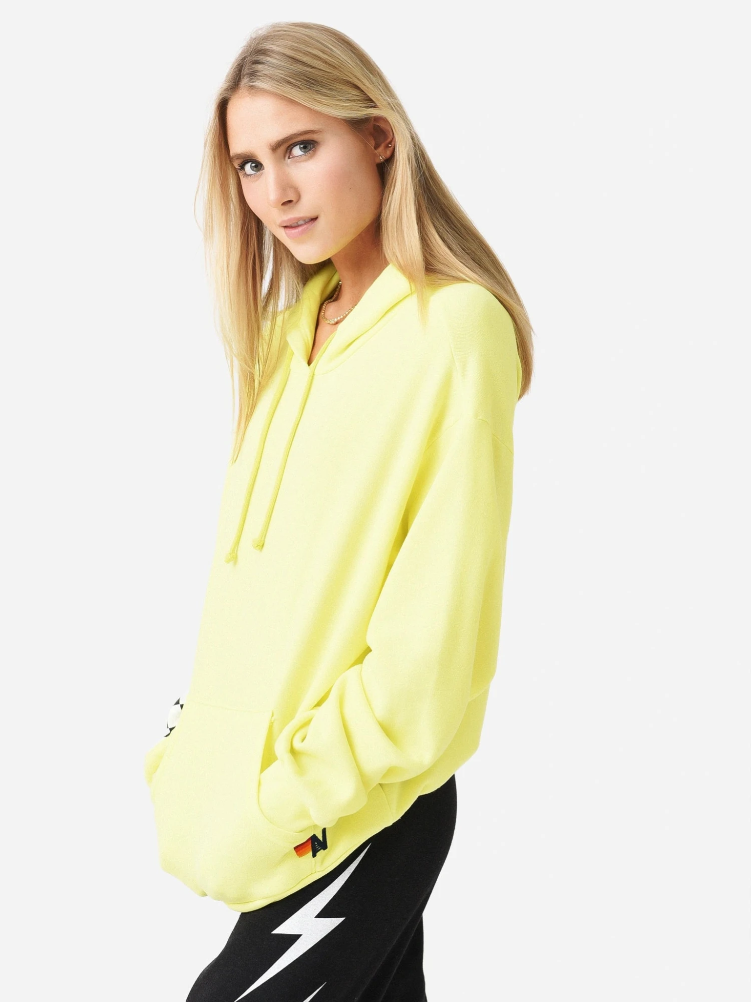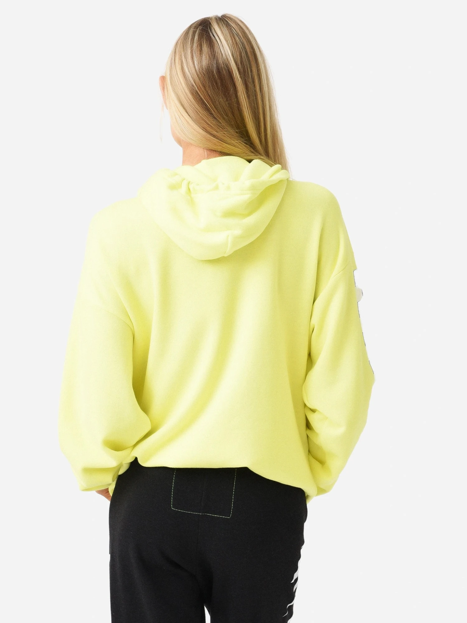 FEATURES:HoodieHigh Neckline with DrawstringsLong SleeveCheck Print on Right SleeveKangaroo PocketTri-Blend FabricationBanded Cuffs and Hem50% Cotton, 37% Polyester, 13% RayonRelaxed FitModel is wearing size Small hoodie.Model’s Measurements: Height: 5’10.5″ | Bust: 32B | Waist: 24.5″ | Hips: 36″ | Dress Size: 0-2 (US)