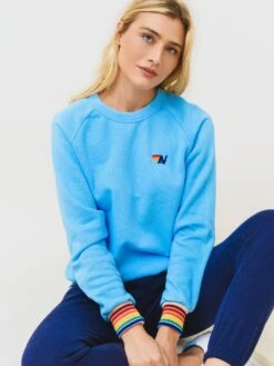 Super-soft crewneck sweatshirt with rainbow ribbed detailing.
