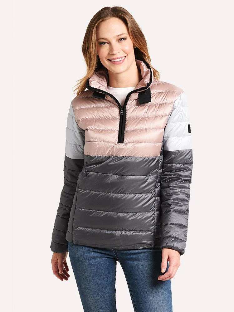 FEATURES:Anorak JacketQuilted DetailsThermo-Regulation with Urban Cool TechnologyPadded Quality Duck DownTricolor DesignStraight-LinedStand-Up CollarSnap Tab at Neck, 1/4 Zip ClosureSide SlitsBogner Fire + Ice Patch on Left SleeveShell: 100% Polyamide; Lining: 100% Polyamide; Fill: 100% duck DownStyled with Frame tee style # LWTS0908, J Brand jean style # JB000361 and P448 sneaker style # F9JOHNFUR. Model is wearing size Small jacket, tee and size 25 jean.