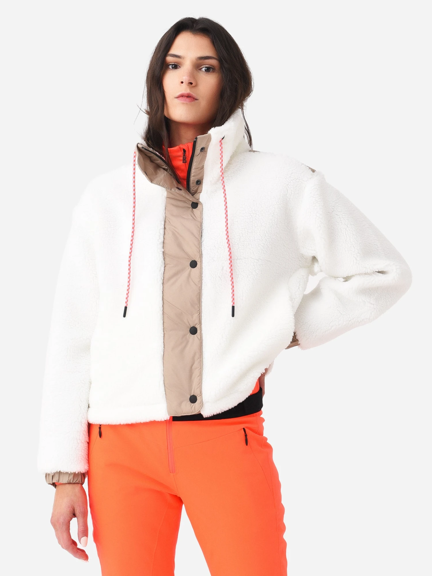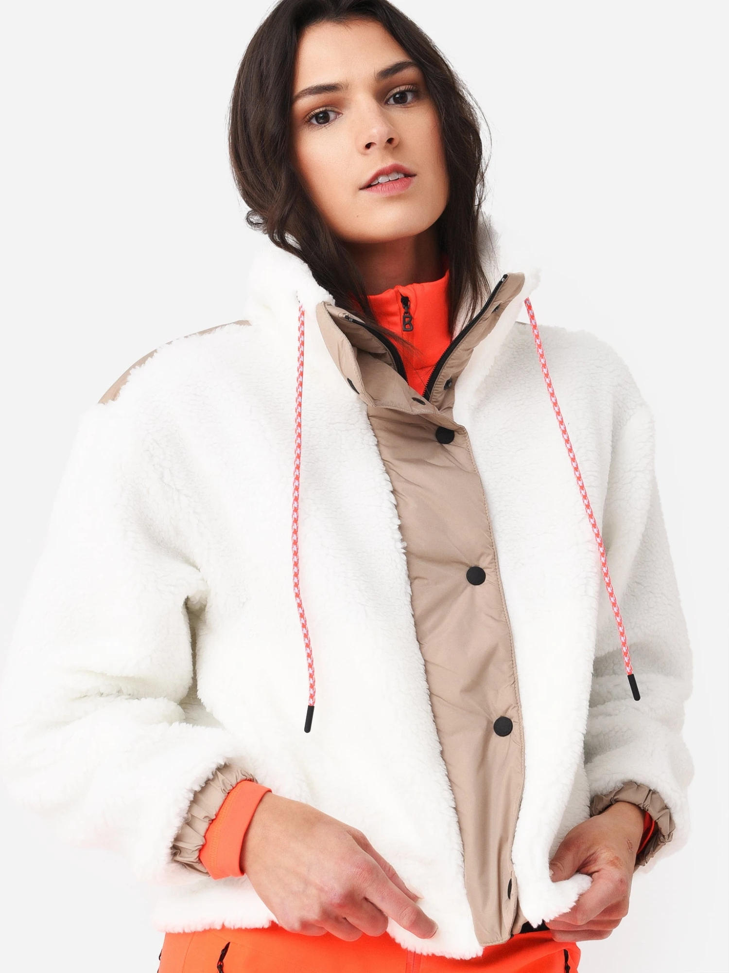 Cozy shearling fleece jacket with contrast details and a drawcord hem.