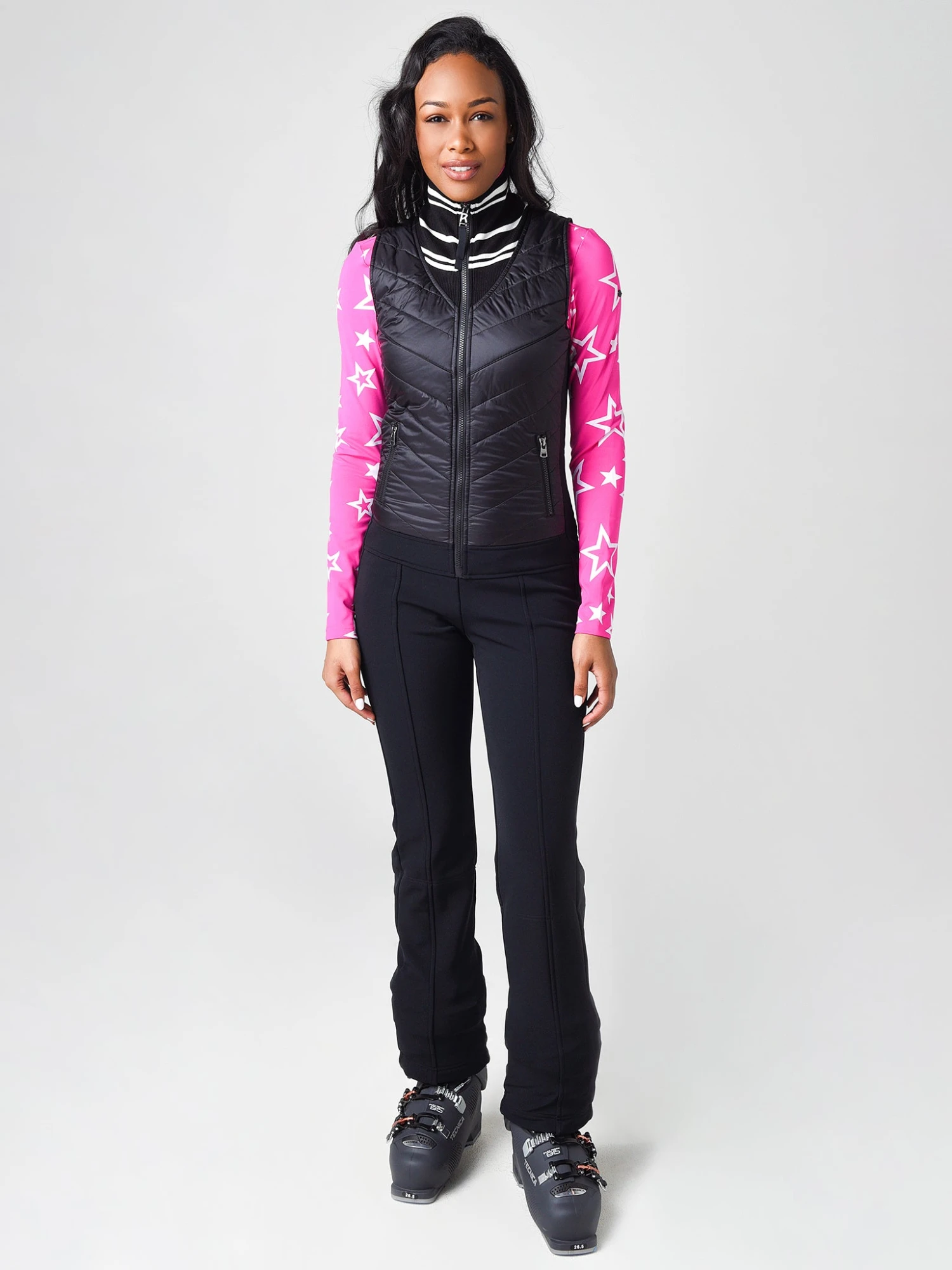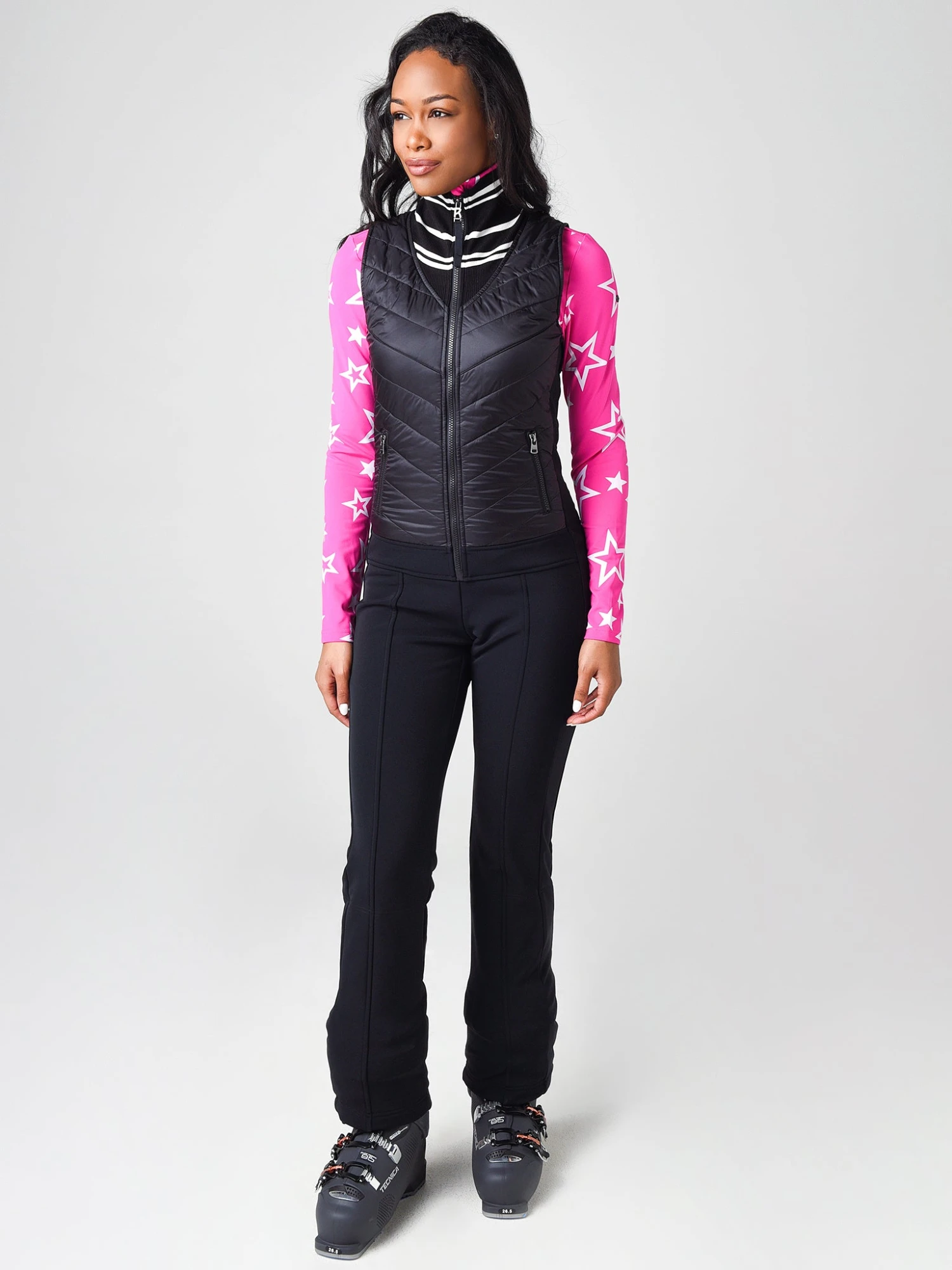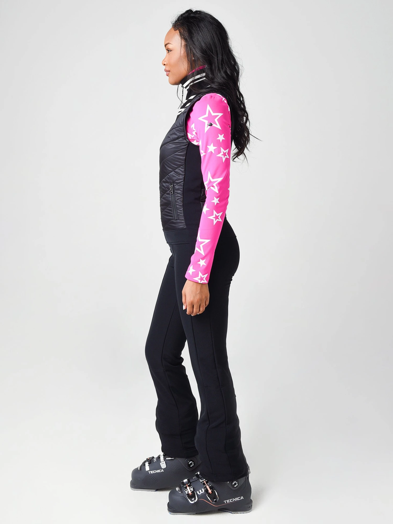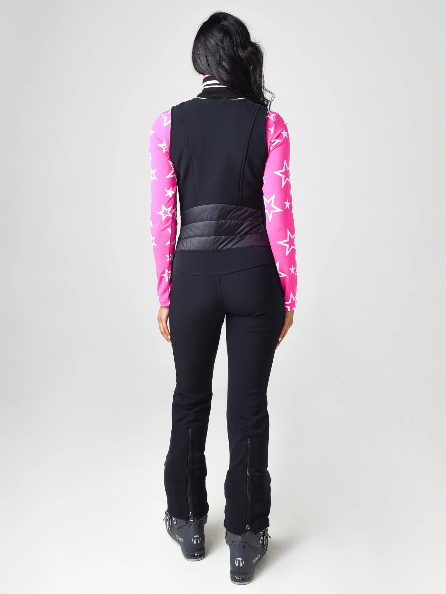 FEATURES:Ski Overall, Ski SuitSoft-Shell FabricationRibbed Turtleneck CollarSoft Fleece LiningTriple-Layer ConstructionInsulatedTechnical 4-Way StretchWater RepellentShell: 87%Polyamide, 13% Elastane; Shell 2: 100% Polyamide; 2 Layer: 100% Polyurethane; 3-Layer: 92% Polyester, 8% Elastane; Lining: 100% PolyurethaneModel is wearing size 6 ski overall.Model’s Measurements: Height: 5’9.5″; Bust: 34A; Waist: 26.5″; Hips: 37″; Dress Size: 2-4 (US)