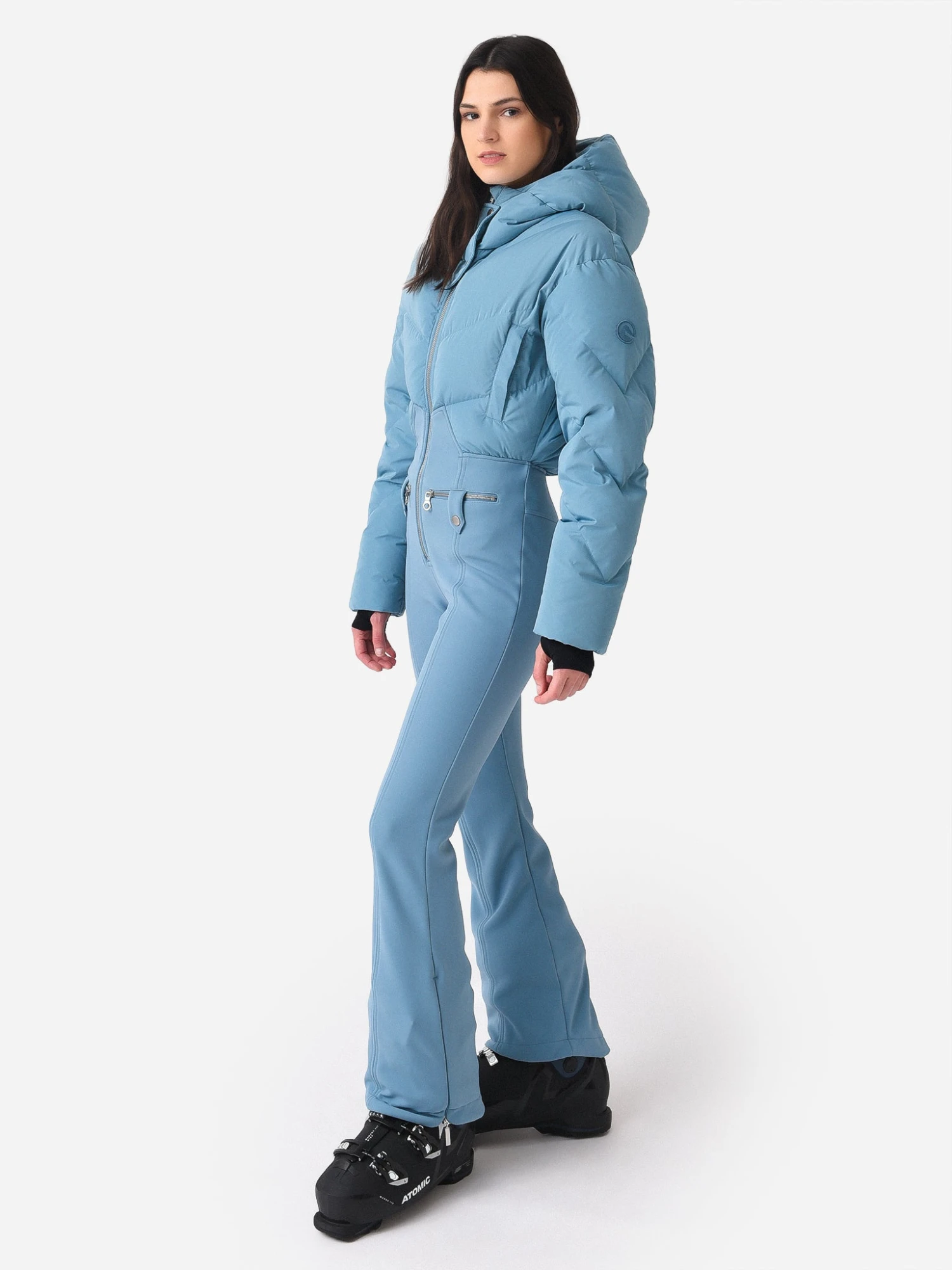 FEATURES:Ski SuitHigh Neckline with HoodLong SleeveSide PocketsFront Zip ClosureBelted WaistZip PocketsZip CuffsStraight LegWater-Resistant FinishShell: Polyester/Elastane | Fill: Down/FeatherClassic FitModel is wearing size Small ski suit.Model’s Measurements: Height: 5’9.5″ | Bust: 34A | Waist: 26.5″ | Hips: 37″ | Dress Size: 2-4 (US)