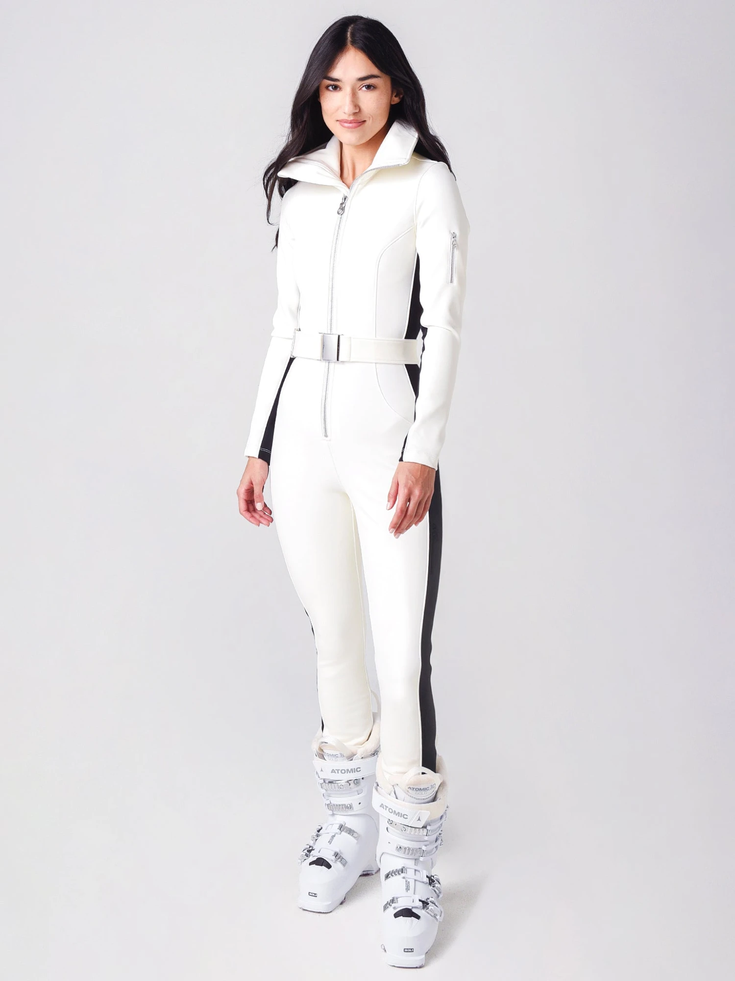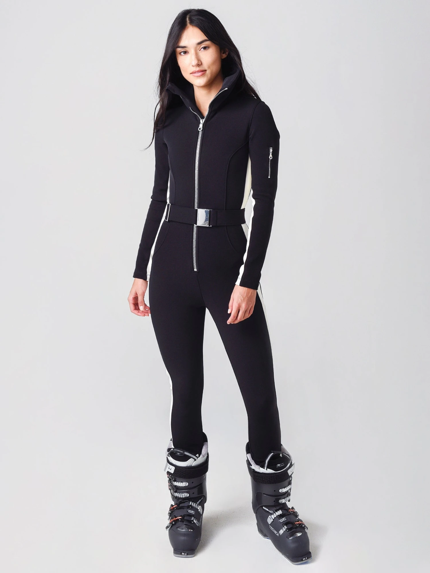 FEATURES:Ski SuitRacing Stripe Detail on SideStand-Up Oversized Collar25k Waterproof Fabric Made in Italy4-Way StretchFleece- LinedSilver Riri® HardwareAdjustable Belt with Buckle Closure and Belt Loop LockerOEKO-TEX® Certified58% Polyamide, 32% Polyester, 10% Elastane Waterproof MembraneModel is wearing size XS suit. Model’s Measurements: Height: 5’8″; Bust: 32B; Waist: 25″; Hips: 36″; Dress Size: 2 (US)