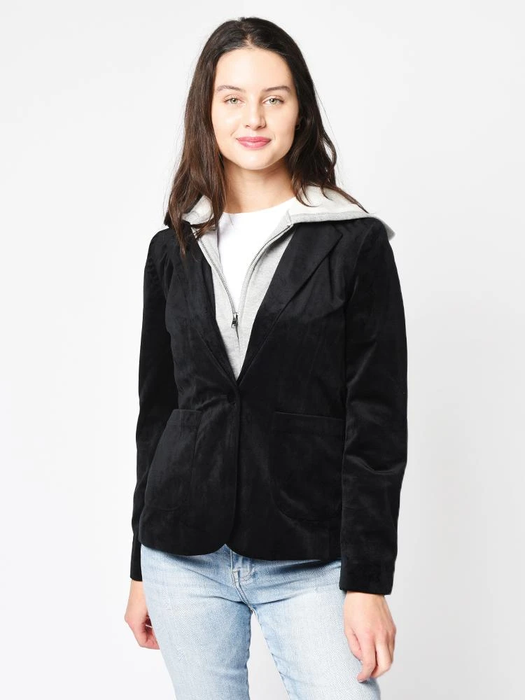 FEATURES:Blazer with Hoodie insertButton Front ImportedStyled with Citizens of Humanity Style # 1728-1149. Model is wearing size small Top and 26 jean.