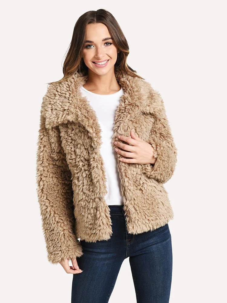 Get cozy in the Dylan Fluffy Sherpa Snap Jacket .