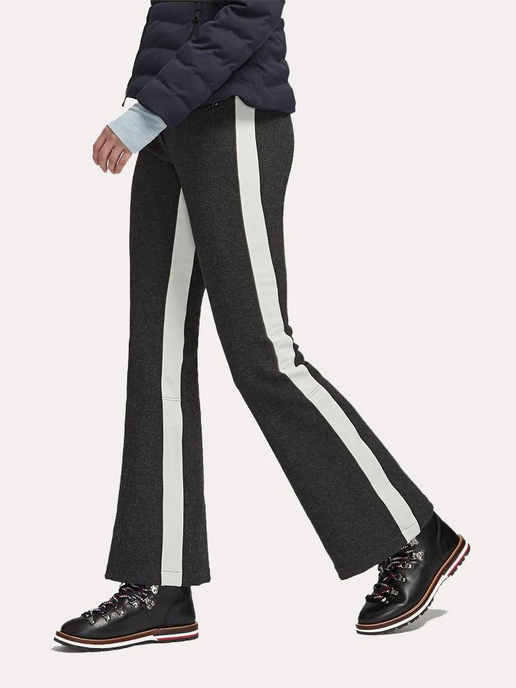 FEATURES:Schoeller Merino wool soft-shell with responsibly made Eco Racer stripe, this pant repels water and wind while keeping you warm and offering maximum freedom of movementLong lasting, high-performing environmentally friendly materialsCompletely fitted to the knee, and is designed with a waterproof powder guard liner to go over your ski bootSlim fit Over-the-boot High rise Waterproof leg powder guard 32 1/2in. Inseam on size 4