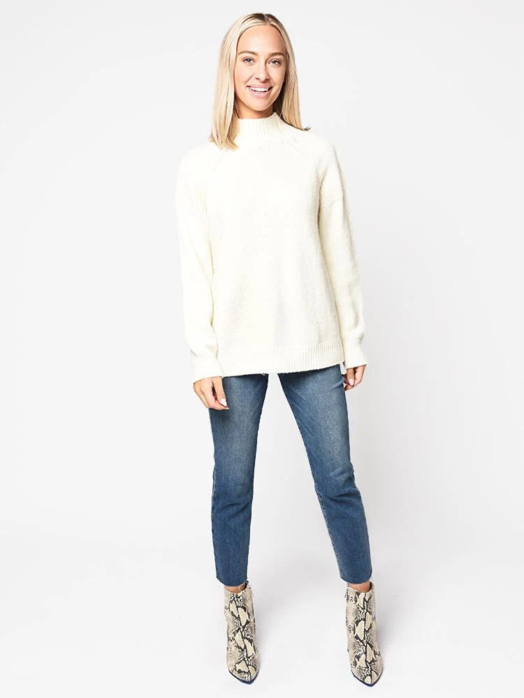 FEATURES:Pullover SweaterKnit FabricationRibbeb Neck, Cuffs and HemBoxy Silhouette45% Polyamide, 25%Alpaca, 25% Wool, 5% PolyesterStyled with Le Jean style # W028-100-3310 and Sam Edelman bootie style # G0502L8903. Model is wearing size Small sweater and size 26 jean.