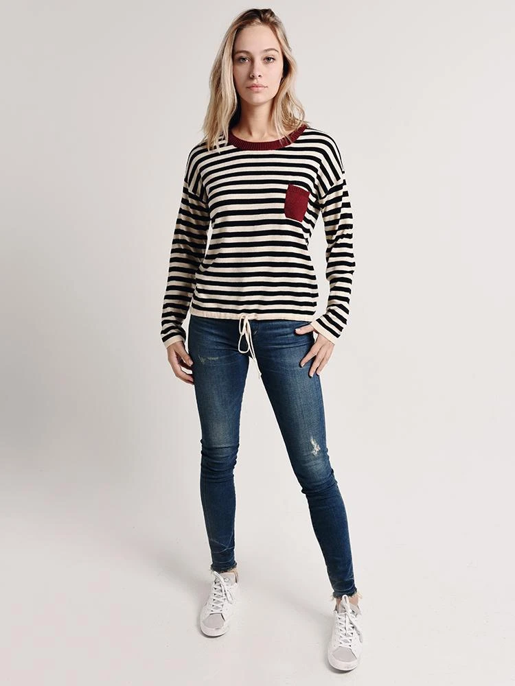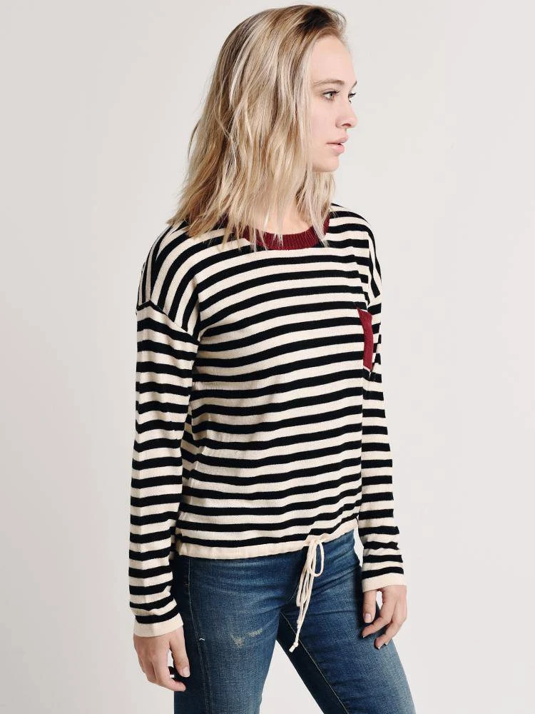 Get a nautical look for the season in the Hem and Thread Drawstring Sweater.