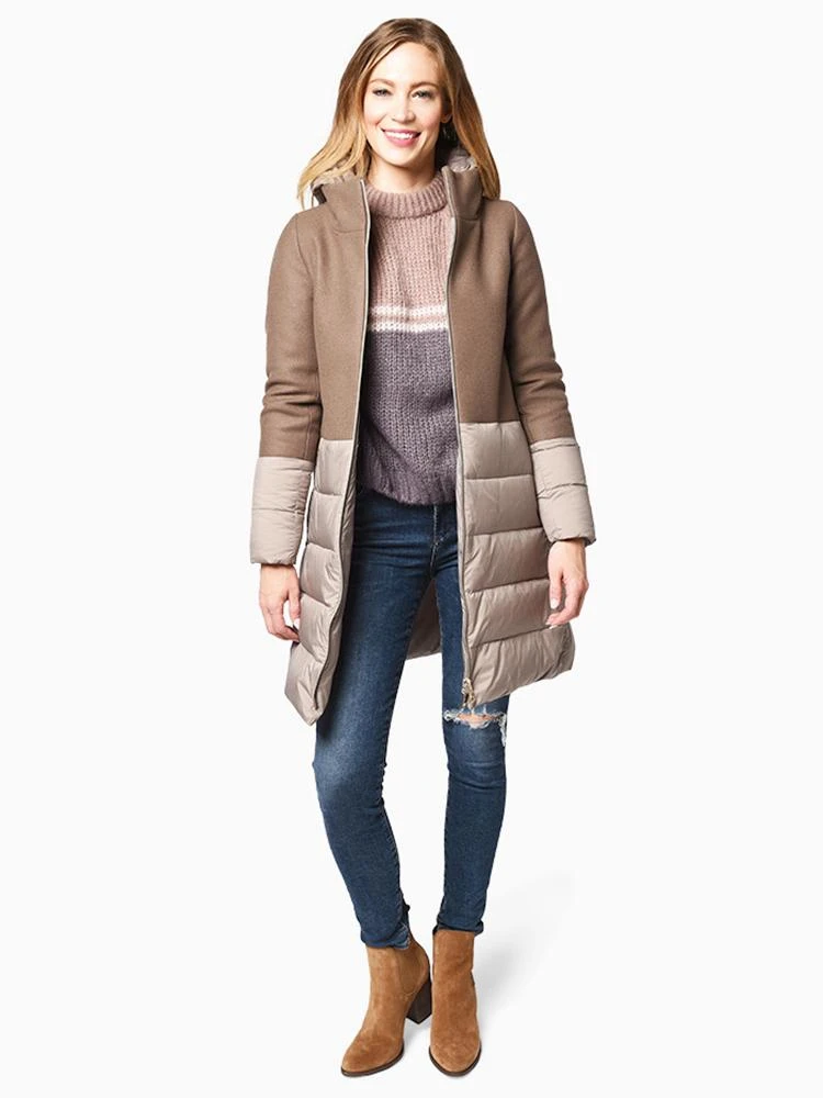 Stay warm this season in the down-injected Herno Woven Half Coat with Hood