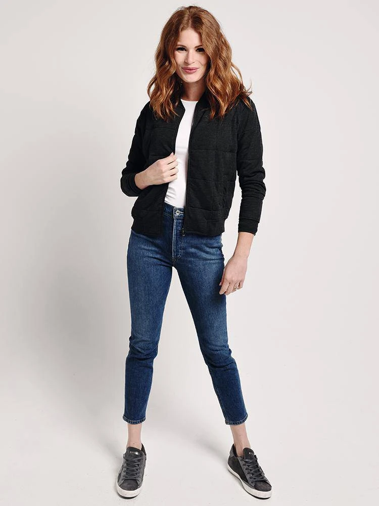 The Majestic Viscose Quilted Zip Front Blazer Jacket pairs perfect with your favorite denim and sneakers.