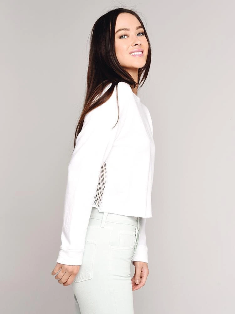 FEATURES:Cotton blendMesh backCrew neck Crop Style Styled with AGOLDE Jeans Style # A003B-2070. Model is wearing size 26 jean and Small Top.
