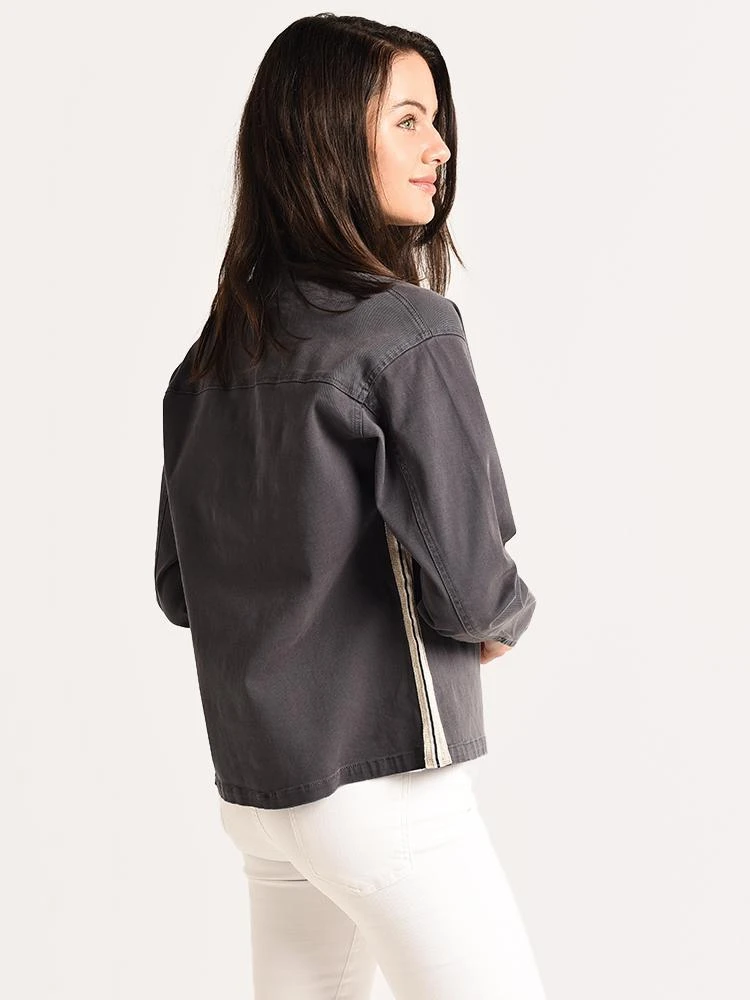 The Monrow Side Stripe Military Jacket will become a staple in your wardrobe and ideal for those days where you want to command attention.