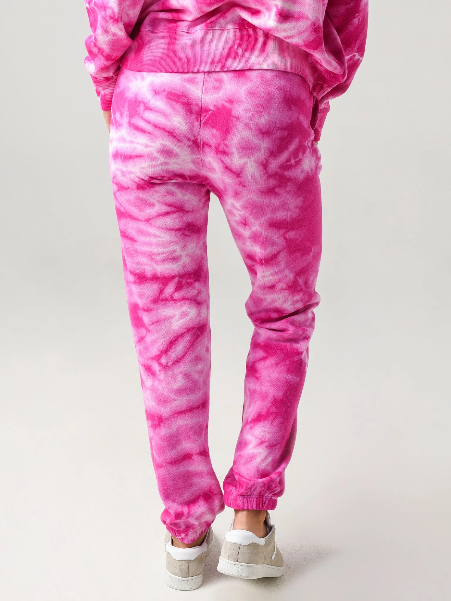 The Monrow Women’s Crystal Tie-dye Boyfriend Sweatpant will instantly brighten your look and lighten your mood.