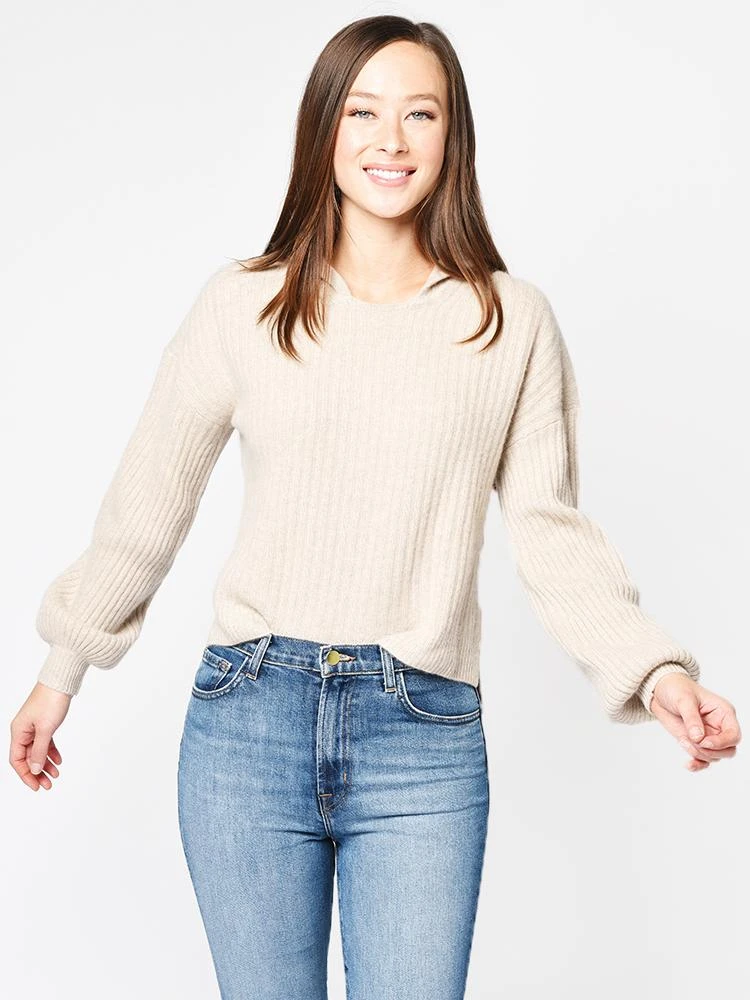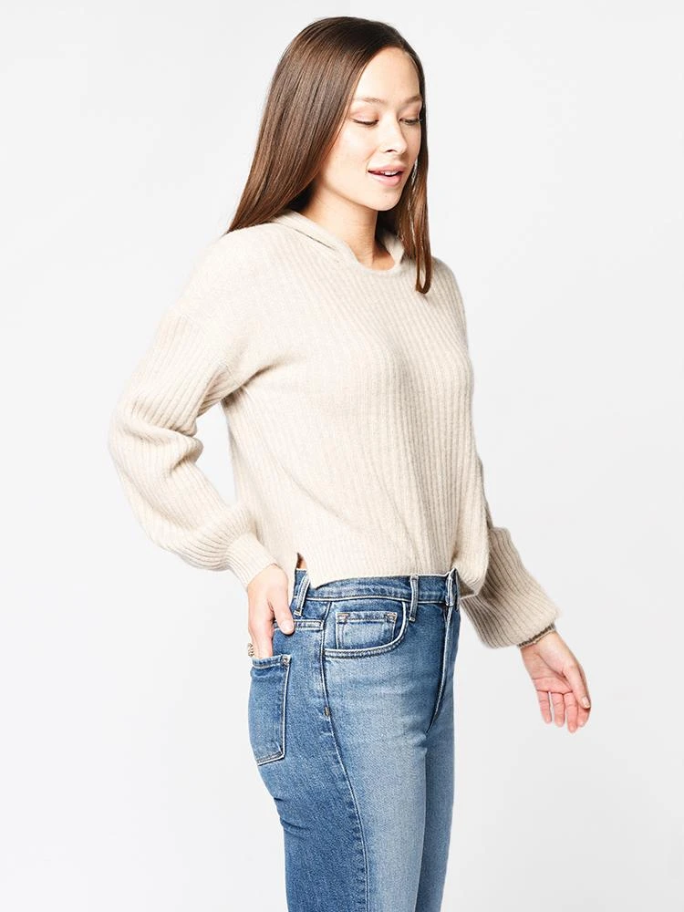 FEATURES:Ribbed CashmereHoodie Style Styled with AGOLDE Jean Style # A045D-983. Model is wearing size small jacket and 26 jean.