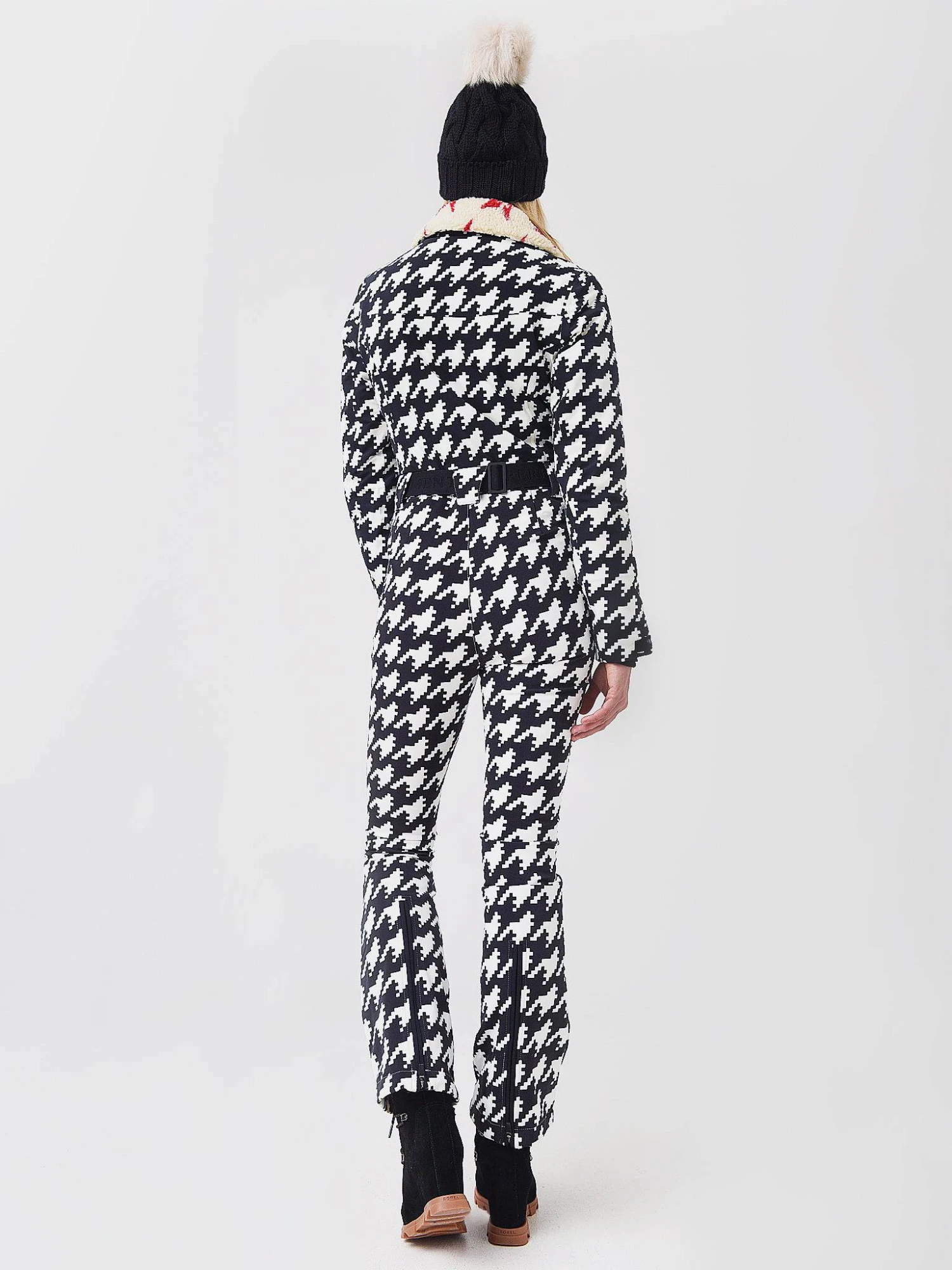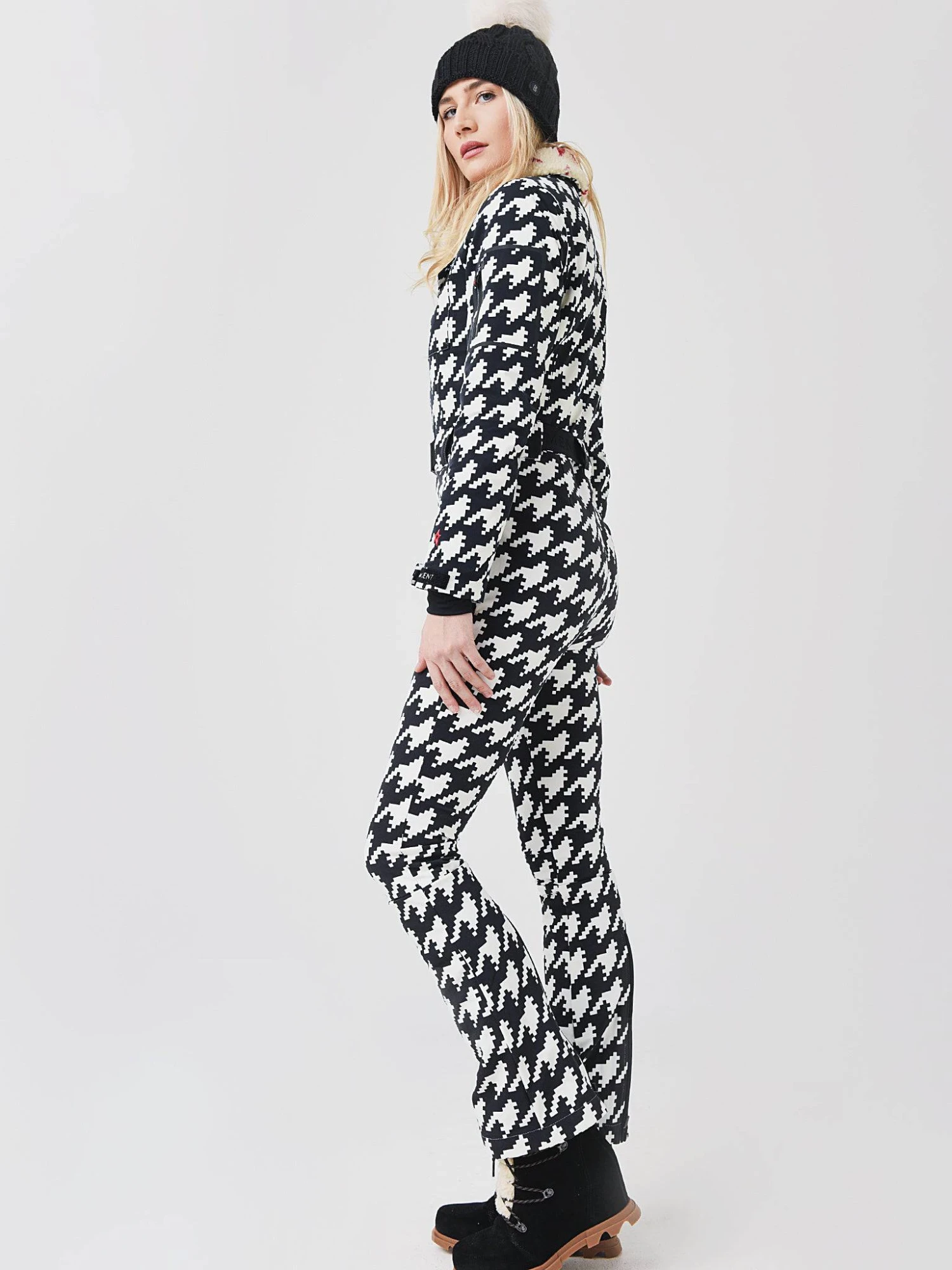 FEATURES:Ski/Snowboard SuitFixed Sherpa Collar w/ Star DetailFront Snap Chest PocketsFront Zip Hand PocketsFull Zip Front w/ Clip Fastening BeltLong Sleeve w/ Zip Pocket on Left SleeveWrist Gaiters w/ ThumbholeFlared Leg Silhouette4-Way StretchWaterproof and Breathable Shell: 90% Polyester, 10% Spandex | Insulation: PrimaLoft®Slim FitModel is wearing size Small ski suit.Model’s Measurements: Height: 5’9″ | Bust: 34B | Waist: 26″ | Hips: 37″ | Dress Size: 2-4 (US)