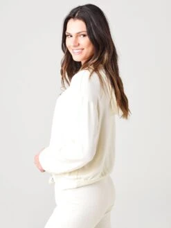 Stateside Women’s Softest Fleece 3/4 Sleeve Pleated Sweatshirt