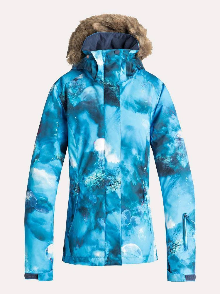 Make a stylish statement on the slopes in the printed Roxy Jet Ski Snow Jacket with removable faux-fur hood trim.