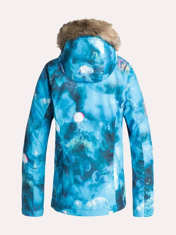 FEATURES:Adjustable hood with removable faux-fur trim Jacket-to-pant system Chin guard Internal media, goggle and pass pockets Mesh lined underarm ventsInternal stretch wrist gaitersCuff with gussetKey clipTuck away powder skirt system with snap fastenersCritically taped seams Prints on Fabric may vary ROXY WarmFlight x2 technology for low bulk and high warmth insulation [Fill weight: 120 g body, 100 g sleeves, 60 g hood]10K ROXY DryFlight technology for better waterproofing [10,000 mm/5000 g]100% polyester Slim fit