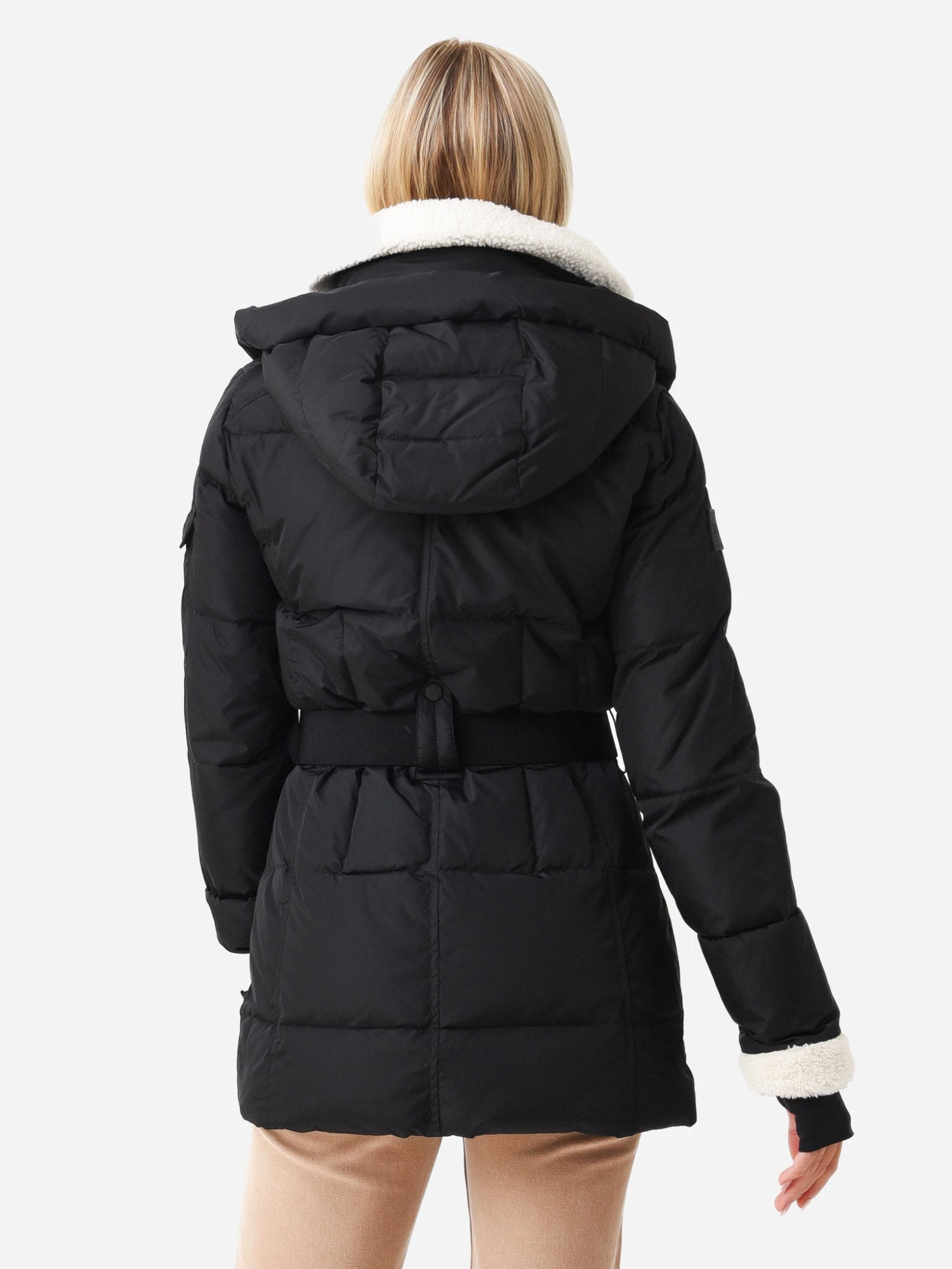 FEATURES:Down JacketDetachable HoodLong Sleeve with Wrist GaitersDetachable BeltSide PocketsTwo-Way Zip ClosureStraight HemLength: 30.5 in.Wind-Resistant & Water-RepellentQuilted FabricationShell: 100% Nylon | Lining: 100% Nylon | Fill: 80% Down, 20% FeathersClassic FitModel is wearing size Small jacket.Model’s Measurements: Height: 5’9″ | Bust: 34B | Waist: 26″ | Hips: 37″ | Dress Size: 2-4 (US)