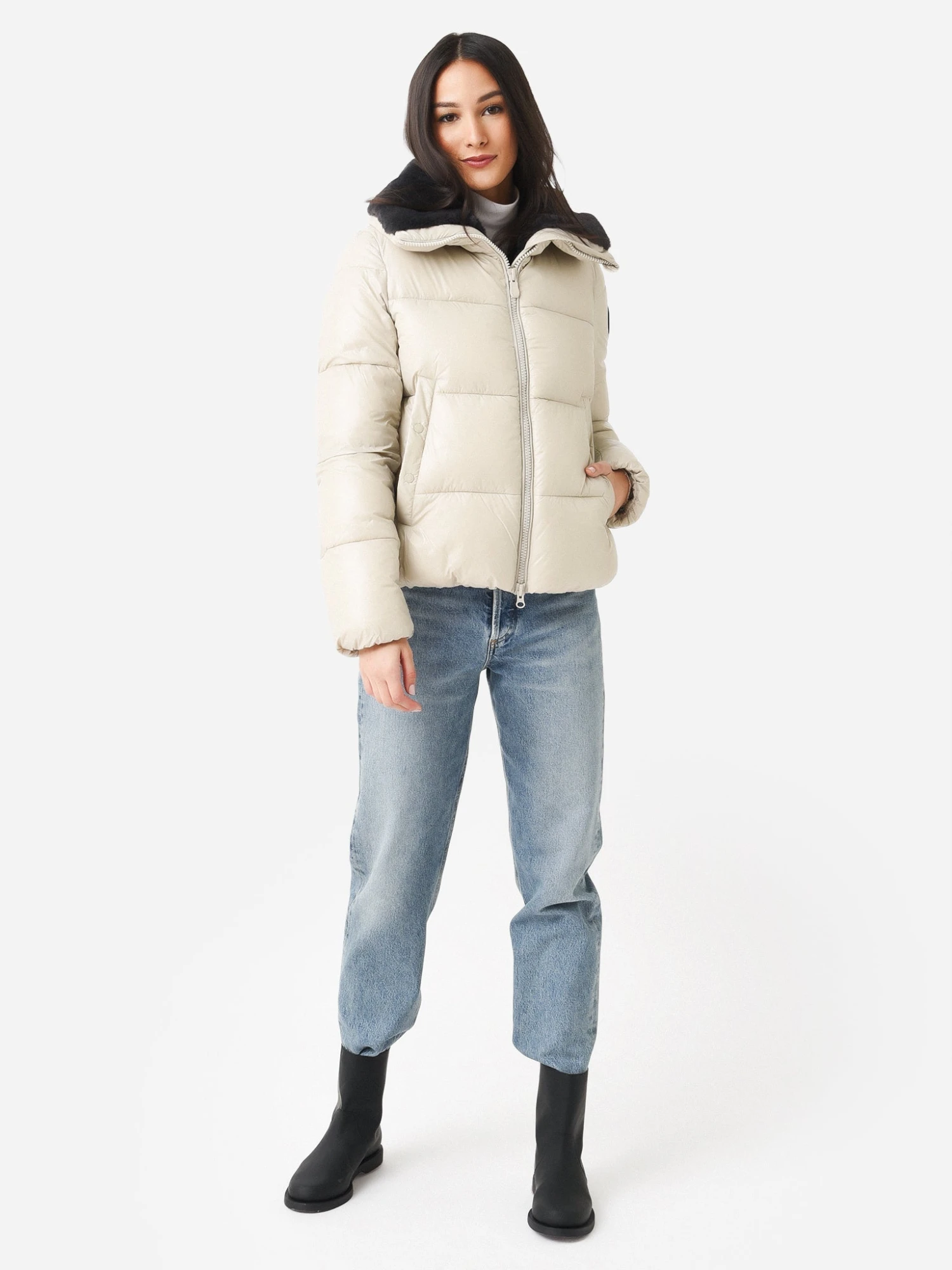 FEATURES:JacketLarge CollarLong SleeveSide PocketsTwo-Way Zip ClosureQuilted FabricationStraight HemShell: 100% Nylon | Lining: Eco-Fur | Fill: 100% NylonClassic FitModel is wearing size Small jacket.Model’s Measurements: Height: 5’9″ | Bust: 32B | Waist: 24″ | Hips: 36″ | Dress Size: 2 (US)