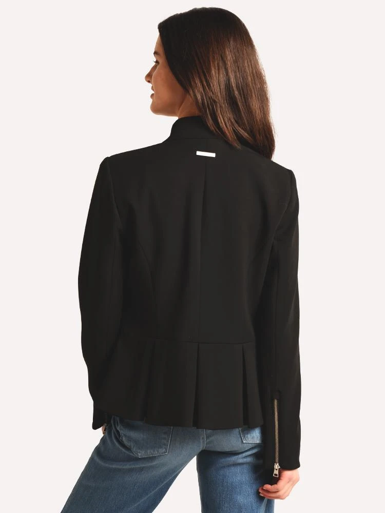 FEATURES:Notched lapels Open front Zippers at cuffs Back pleats 100% polyester lining64% polyester, 34% viscose, 2% spandexDry clean Styled with Stateside cami Style # 04-2310, Citizens of Humanity jeans Style # 1761-850 and Veja sneakers Style # EA2001W. Model is wearing size small jacket, size small tee and size 25 jean.