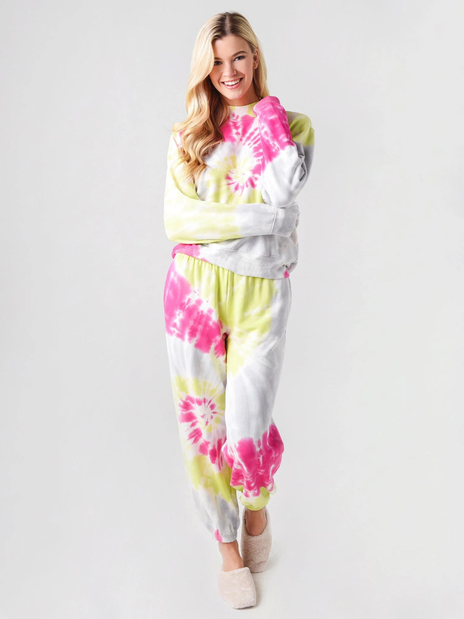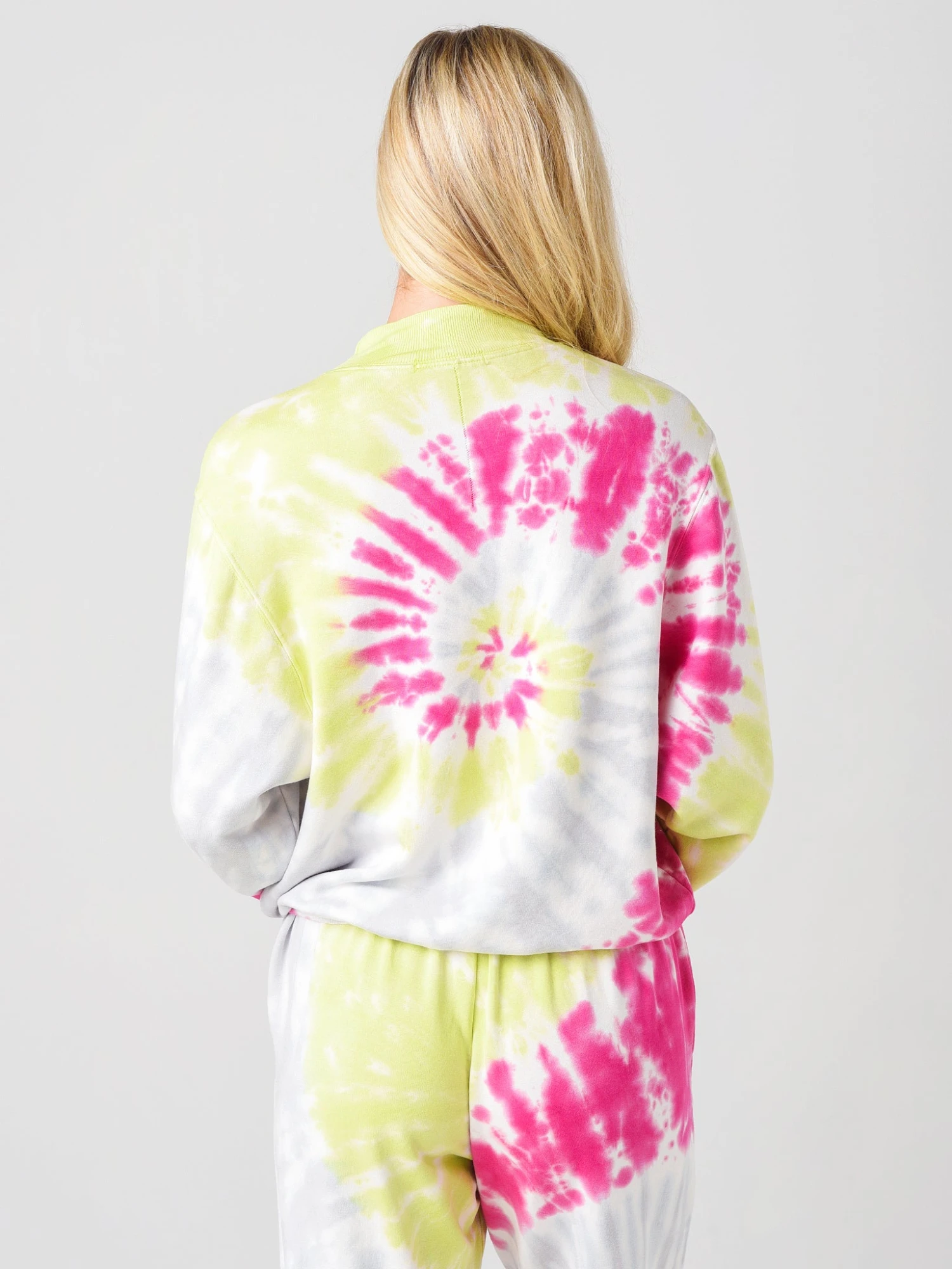 Lounge away in the custom tie-dyed Stateside Women’s Tie-Dye Viscose Fleece Mock-Neck Sweatshirt.