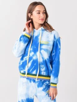 FEATURES:HoodieHigh NecklineDrawstring HoodRaglan SleeveColor-Blocked Ribbed Sleeve and Hem”Warm Weather Cold Beer” Print Graphic on Left ChestAll-Over Tie-DyeSuper SoftRelaxed FitSelf: 75% Cotton, 25% Polyester; Rib: 95% Cotton, 5% Spandex; Trim: 100% PolyesterModel is wearing size Small hoodie.Model’s Measurements: Height: 5’9″; Bust: 32C; Waist: 24.5″; Hips: 36″; Dress Size: 2 (US)