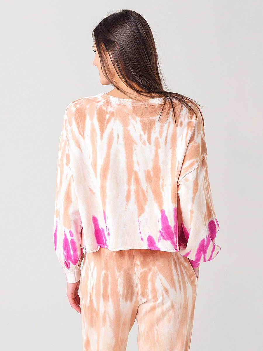 The Z Supply Tempest Sorbet Skies Tie-Dye Pullover paired with the Boyfriend Jogger is the grooviest set for the season.