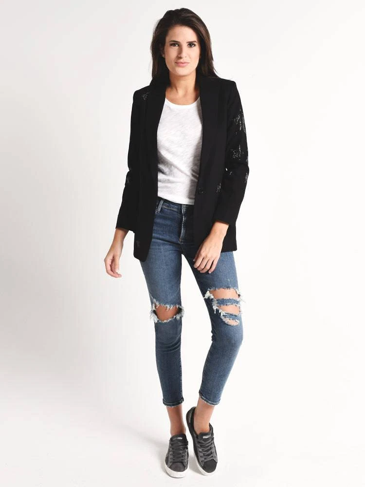 The Zadig and Voltaire Viva Bis Star Blazer is right on trend with your favorite denim for your next date night.